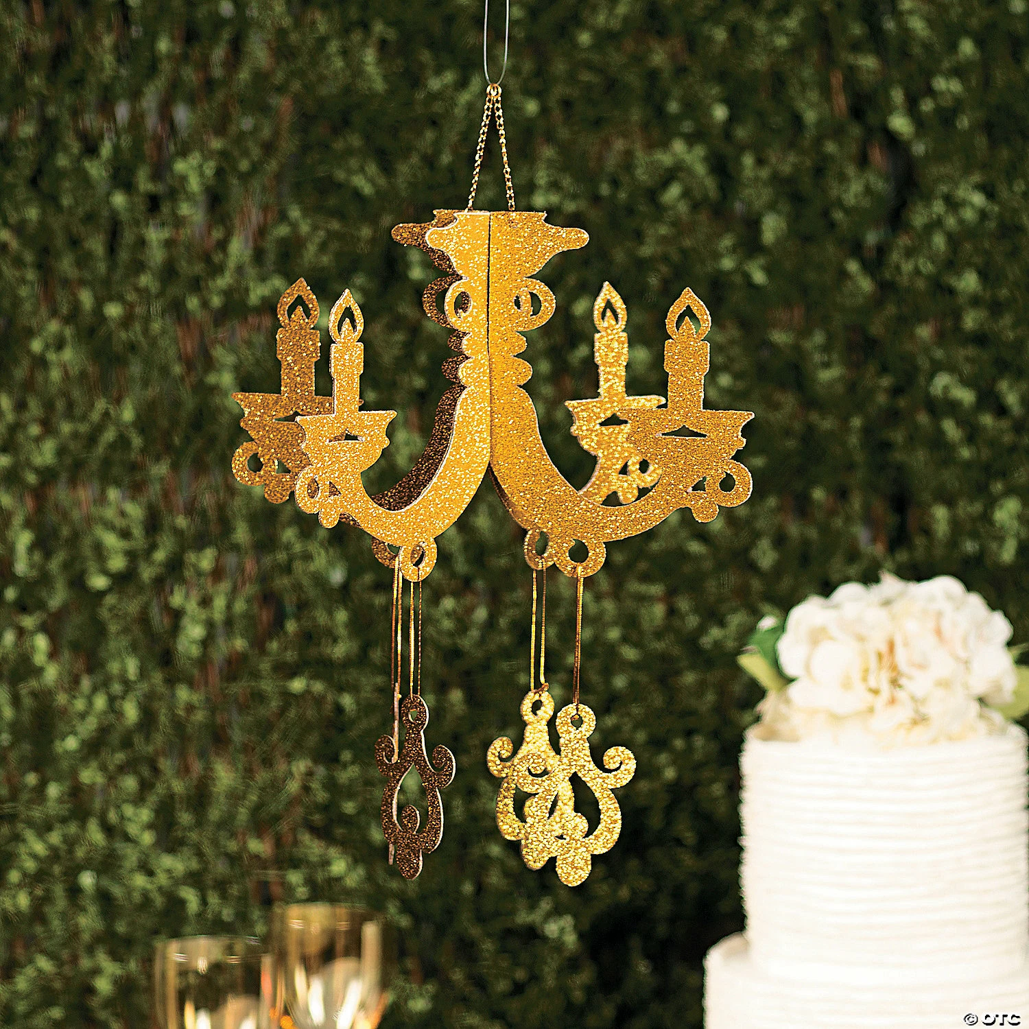 โข PERFECT FOR ANY EVENT: From birthday parties to school dances, this glittery chandelier is the perfect party decoration. It’s versatile and fun!โข BUDGET-FRIENDLY DECORATIONS: Add lots of character to the look of prom decorations without spending lots of money. This gold chandelier gives you more bang for your buck.โข QUALITY DECORATIONS: You donโt have to pay a fortune for high quality party decorations! This ceiling decoration is high quality and looks great alongside any other party decorations. โข YOUR PARTY SUPPLY HEADQUARTERS: Shop Oriental Trading for unbeatable selection and guaranteed lowest prices. From decorations to tableware to party favors and more, we can help you party for less.Product Description:This glitter chandelier is a perfect wedding decoration that will also make a 50th anniversary party shine! It’s a great accessory to your prom and will add a sparkling glamour to an unforgettable evening. Include it in your Roaring 20s party supplies for a bit of vintage pizazz! Leave it up all year long as a home accent that commands attention.Size: 12″Quantity: 1Material: Cardboard.Includes metal chain for hanging.Simple assembly required. ยฉ OTC