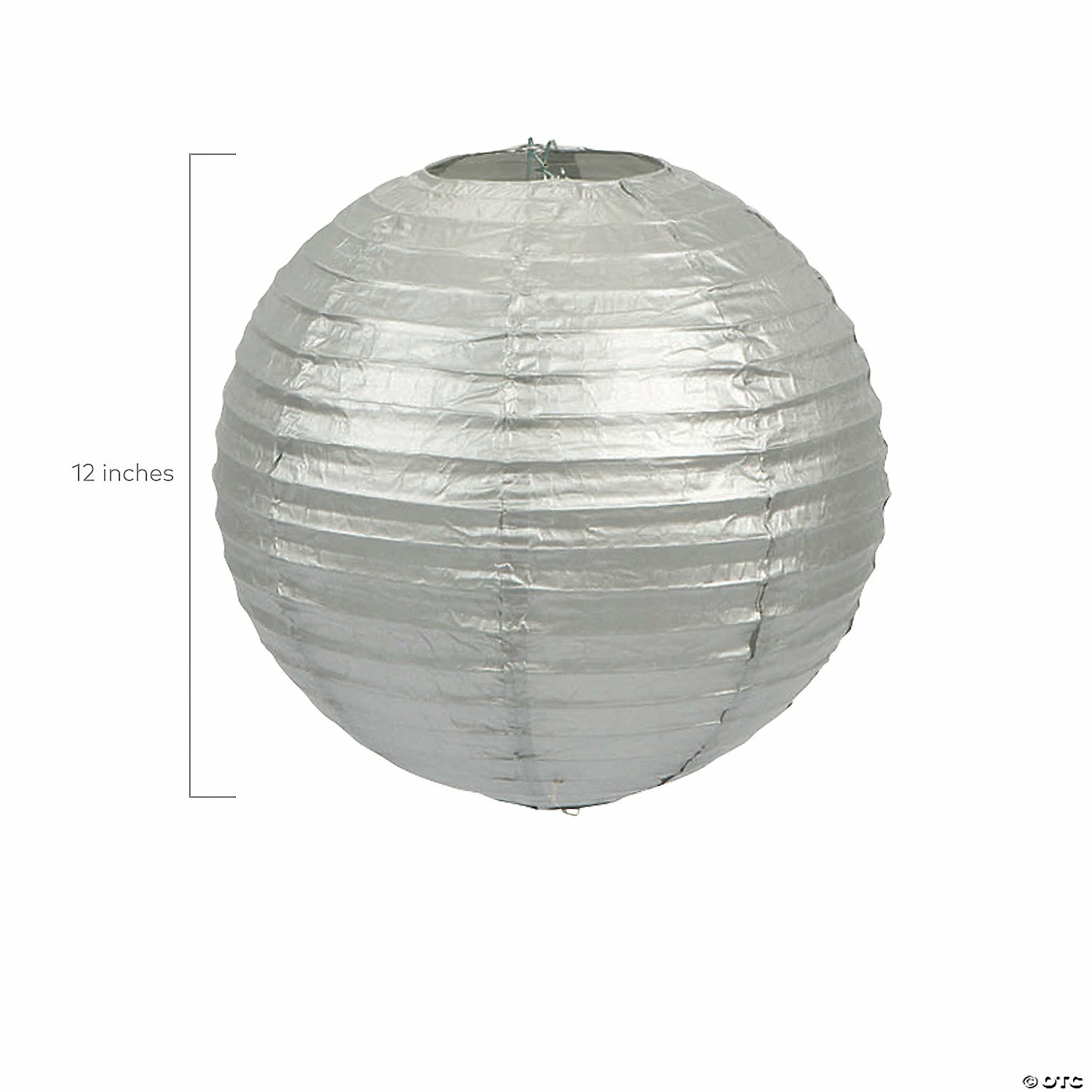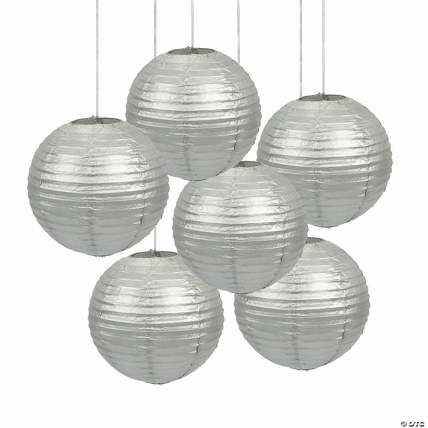 β’ BUDGET-FRIENDLY DIY DΓCOR: Not just for parties, these silver lanterns make beautiful, affordable additions to your home dΓ©cor, classroom decorations, dorm dΓ©cor and more.β’ VIBRANT COLORS: These Silber lanterns offer a sleek stylish shade that perfectly matches up with your school colors, wedding scheme or other event color theme. β’ EASILY ASSEMBLE AND REUSE TIME AFTER TIME: These paper lanterns are easy to assemble and hang. Simply fold them flat after use for easy storage until your next celebration!β’ PARTY SUPERSTORE: Shop Oriental Trading for all of your party supply needs, from decorations to tableware to party favors and more.Product Description:Decorate any area with easy-to-coordinate paper lanterns. These classic hanging paper lanterns are perfect for your wedding reception theme, engagement party dΓ©cor, decorative accents at prom, and for any other special event! Choose the color that suits your celebration for perfect, eye-catching flair. Find even more party decorations on our website to mix and match and create a unique party theme.Size: 12βShape: Round.Quantity: 6Material: Paper.Includes wire hangers. Simple assembly required. Β© OTC