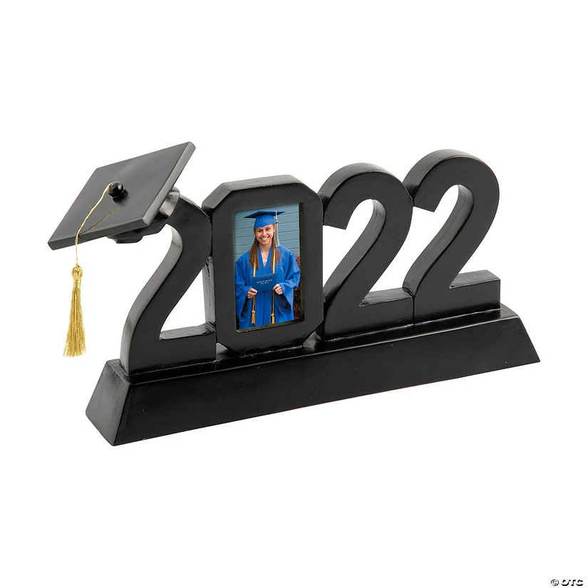 Celebrate the 2022 graduate with this impressive picture frame featuring a spot for a photo of the grad within the โ0โ of the 2022. A cute graduation cap and tassel sit atop the first โ2โ. A fantastic graduation decoration to add to home decor, this frame also makes a great centerpiece decoration for a 2022 graduation party. Resin. 8 1/4″ x 1″ x 5″ with a 1 1/4″ x 2 1/4″ photo space. ยฉ OTC