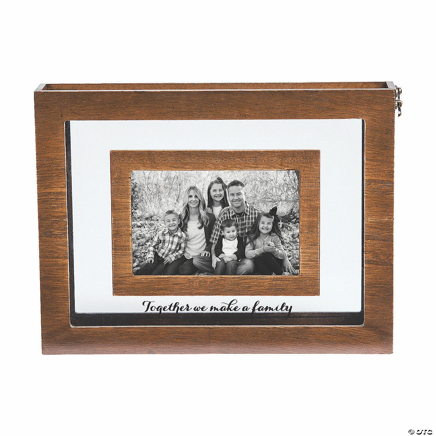 Make a statement about your family unity with this Blended Family Sand Ceremony Photo Frame. Include the children in the unity ceremony during the wedding; have each child and both parents add sand to the frame and put a favorite picture of the entire new family inside. This frame makes a great keepsake and home decoration after the wedding. Wood and glass. 12″ x 1 3/4″ x 9″ with a 6″ x 4″ photo space. Sand not included. © OTC