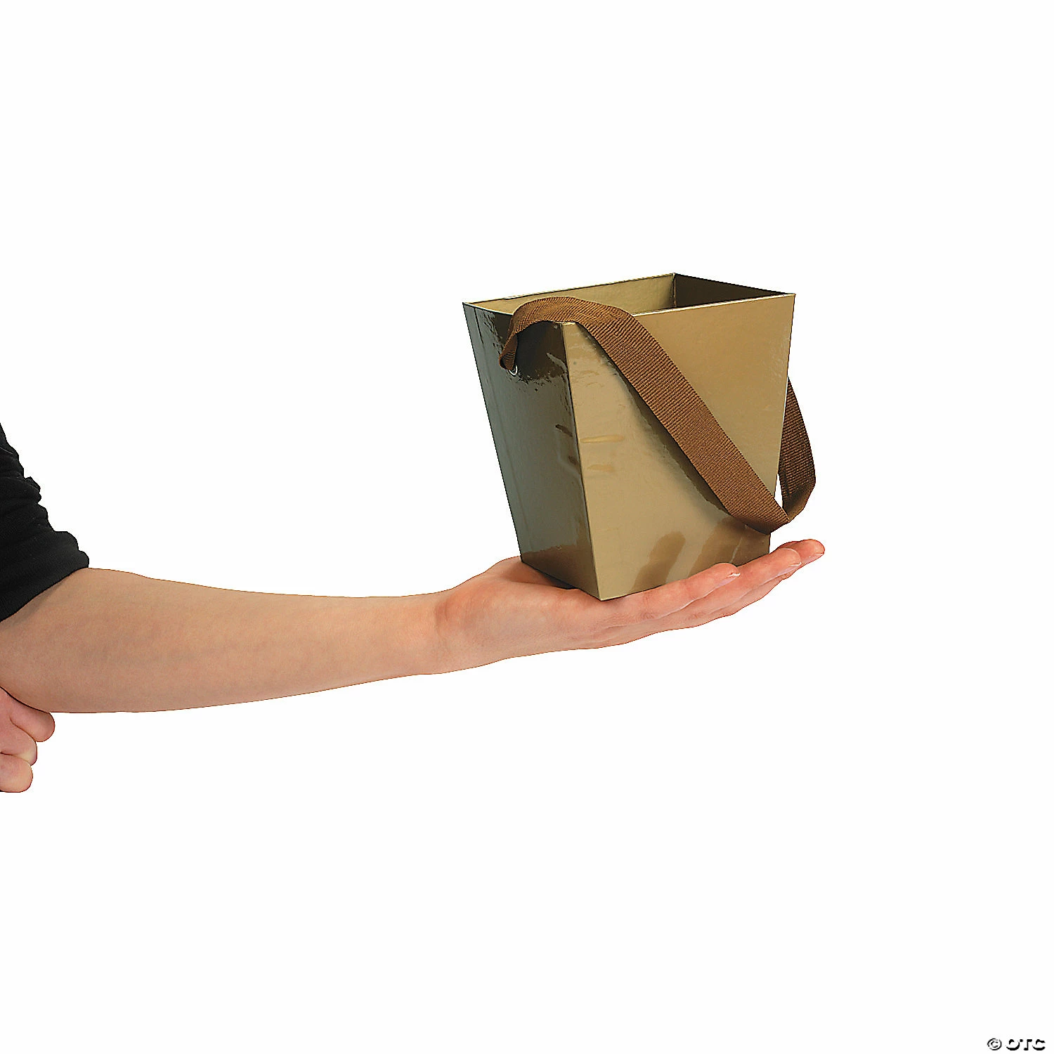 Fun for any occasion! These favor buckets are ideal for filling with wrapped candies or gifts to hand out as favors during holiday parties, office events, wedding receptions or even during casual get-togethers with family and friends. Cardboard. (6 pcs. per set) 4 1/2″ x 4 1/2″ x 5″ with a 6″ ribbon handle.
