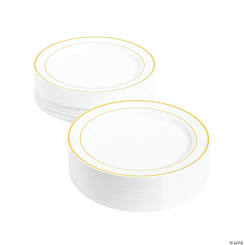 Flash Sale ๐งจ Bulk White Plastic Dinner Plates with Gold Trim – 100 Pc. ๐