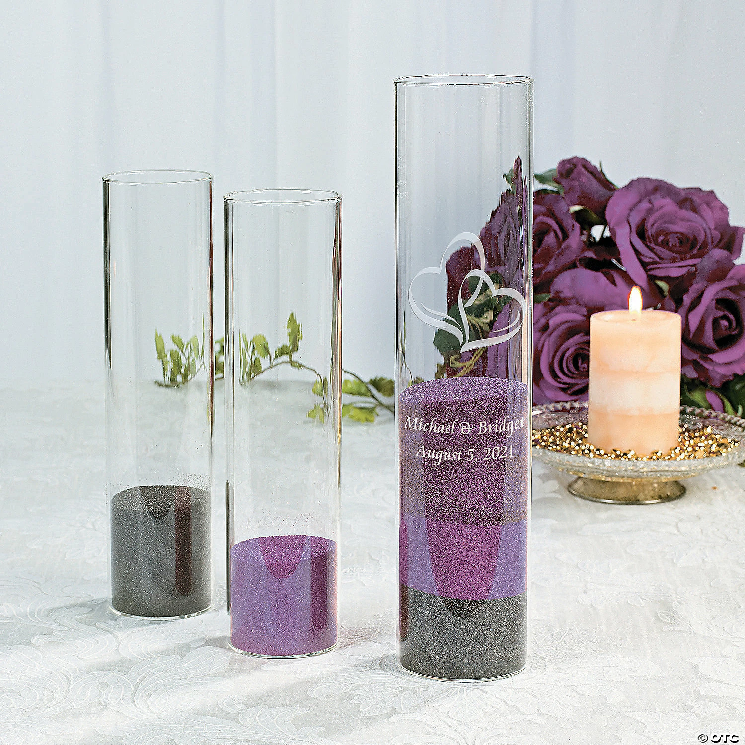 Colored sand is the perfect touch for a bride and groom hoping to create a keepsake of their wedding day. Coming in a variety of colors and shades, pick your favorite color combination or those that match your event’s color scheme.