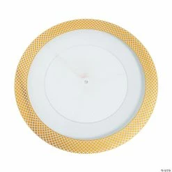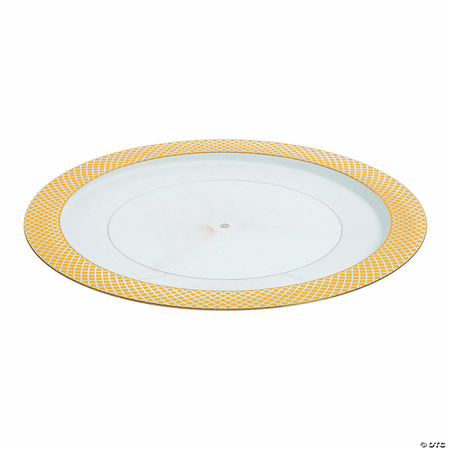 Rimmed with a pattern of gold diamonds, these charger plates add a touch of understated elegance to your table or wedding decorations. Theyโre perfect for chic place settings at weddings, anniversary parties or New Yearโs Eve celebrations. Place plates heaping with tasty treats on top without losing the elevated style of the gold rim. Shop more glitzy party supplies and decorations on our site. Plastic. 13 1/2″ diam. Not microwave safe. Hand wash only. ยฉ OTC