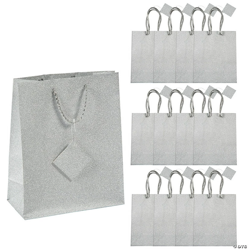 โข All Occasion Use: These versatile gift bags are perfect for year-round gift-giving. From birthdays to baby showers to anniversaries and more, these bags are ready for any occasion! โข Quality: These stylish gift bags are sure to make your present stand out from the pack. Just add some tissue paper for a beautiful gift presentation!โข Easy Gift Wrapping: These sturdy gift bags are suitable for holding a variety of presents and come with easy-to-carry handles. They make wrapping any gift easy breezy!Product Description:Add sparkle and flash to any gift with these Medium Glitter Gift Bags. The glitter makes them bright enough to make any gift shine a little bit brighter. Stock up for future birthday presents or Christmas gifts or use them as loot bags for party favors at your own bash. Each with a gift tag.Size: 7 1/2″ x 3 1/2″ x 9″ with 6 1/2″ handles.Quantity: 12Material: Paper.