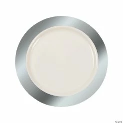 Hot Sale ๐ Premium Ivory Plastic Dinner Plates with Metallic Border – 25 Ct. โญ
