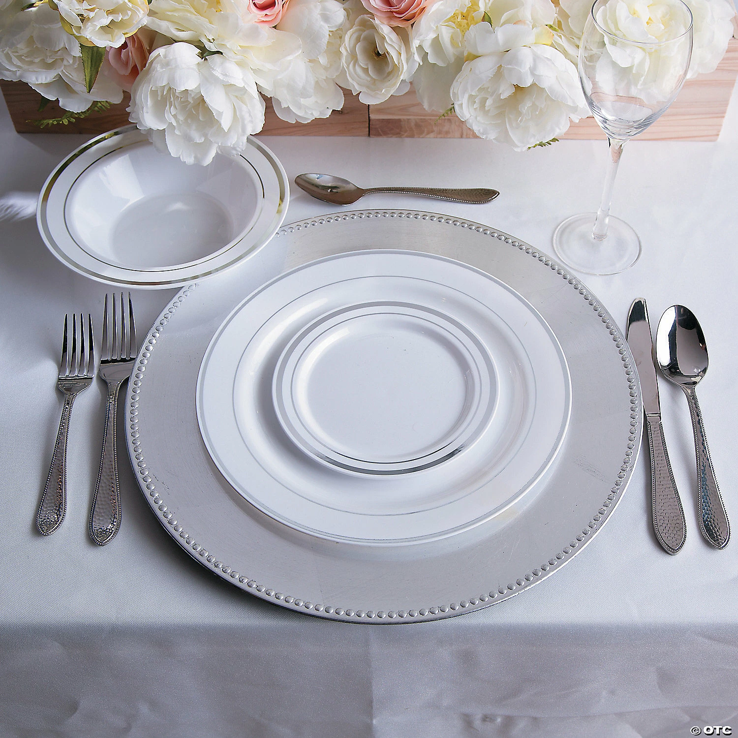 Cheap โ๏ธ Premium White Plastic Dinner Plates with Metallic Trim – 25 Ct. ๐