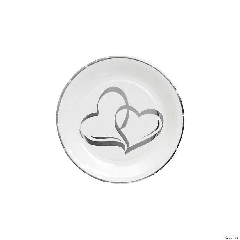 Brand new ๐ Silver Foil Two Hearts Paper Dessert Plates – 25 Ct. ๐