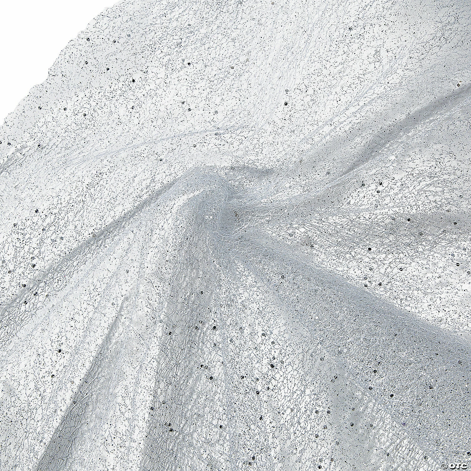 Add a splash of stunning silver to table decorations, chair dΓ©cor and more. Packed with eye-catching specks of silver glitter, this lightweight decorative fabric is the perfect accent for DIY wedding centerpieces and more. The chic silver coloring makes this Silver Glitter Fabric Roll a truly versatile addition to your wedding supplies! Polyester. 30″ x 30 ft. Imported.