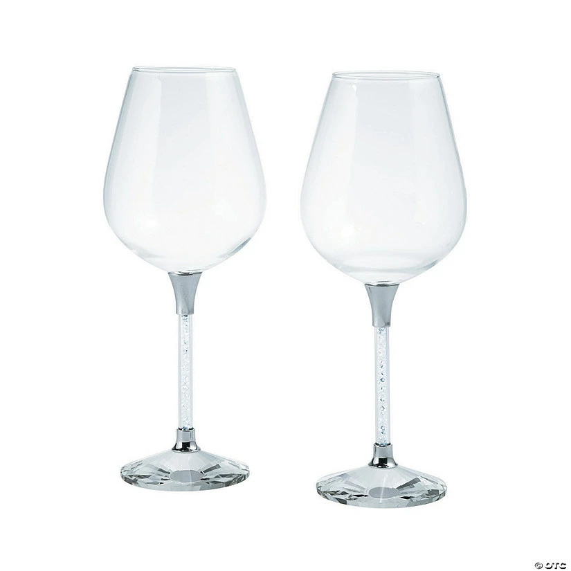 Buy ๐ Silver Rhinestone Stem Wine Glasses – 2 Ct. ๐