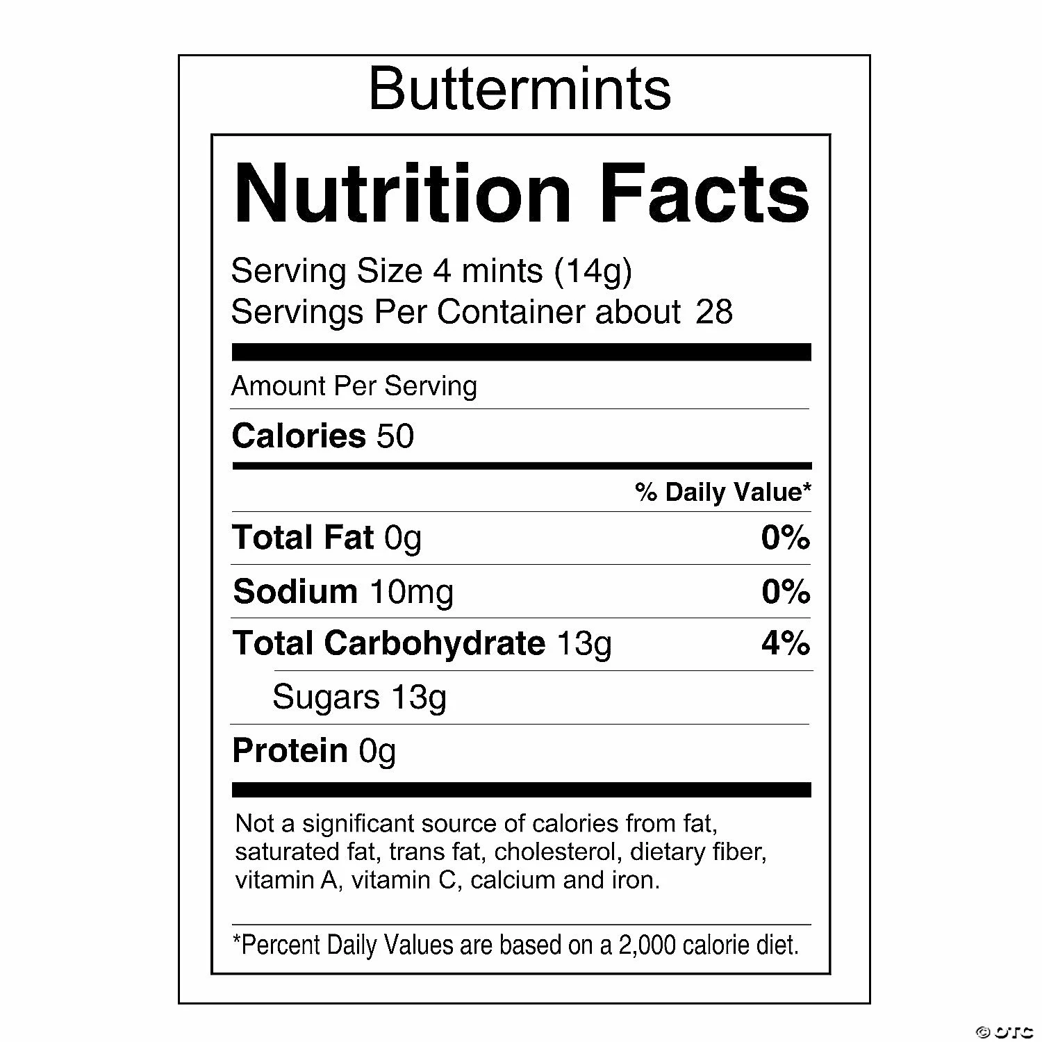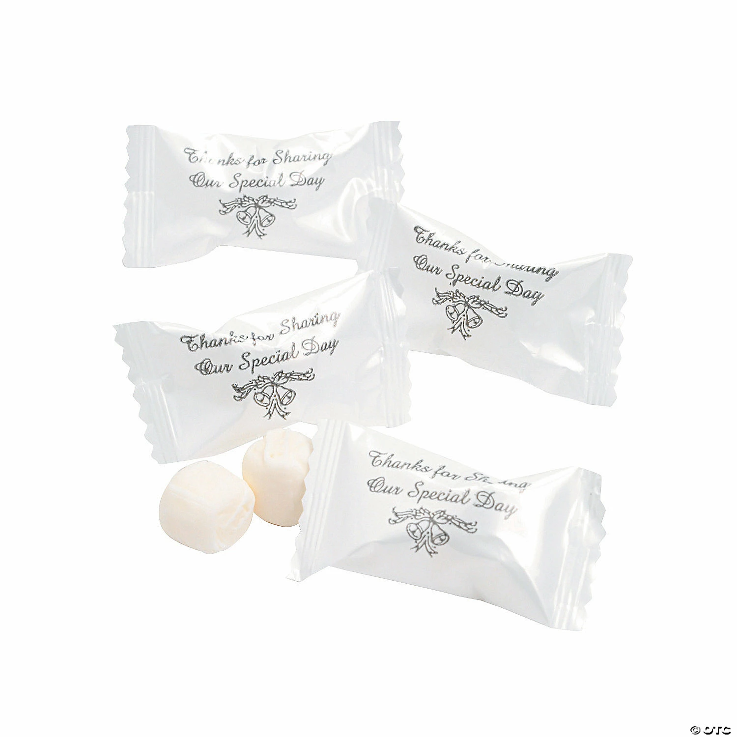 โข What’s Included: This set includes 108 individually wrapped packages that include two buttermints and feature silver script that reads: Thanks for Sharing Our Special Day. Lovely for wedding receptions, commitment ceremony celebrations and anniversary parties. โข Non-Returnable: Candy is non-returnable. For more information, visit the Return Policy page located on our website.โข Important Country of Origin Information: Made in the U.S.A. For certain items sold by OTC on our Web or Mobile sites, country of origin information can change and what is displayed may not be accurate or consistent with manufacturer information. For up to date country of origin information, it is recommended that you rely on product packaging or other manufacturer information.โข Product Information: These wedding mints are fat-free, gluten-free, nut-free and Kosher (dairy). Details about ingredients, nutrition, allergens and other product information are provided on our Web and Mobile sites for reference purpose only, without warranty or representation as to accuracy. Manufacturers adjust their labeling regularly and are solely responsible for the accuracy of the information. For general questions concerning these items, please contact our customer service at 800-228-0475.Product Description: Send guests off with your thanks and these beautifully packaged buttermints! A sweet addition to any wedding reception or anniversary party, this set includes 108 packages. Each package includes two mint flavored buttermints and has silver script that reads: Thanks for Sharing Our Special Day. Fill decorative dishes with these buttermints and place on the dessert table, scatter the packages onto tables as tasty decor or tuck into favor bags. Specs:Size: 14 oz. totalQuantity: 108 piecesDietary needs: Fat-free, Nut-free, Gluten-free and Kosher (dairy)Brand: ยฉ OTC – Oriental Trading Company